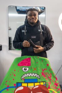 With the support of family and friends, that space was slowly renovated piece by piece. Damaged walls were repaired, air conditioning was installed, and a simple shed became the place where Henry began learning the craft. At first, he cut hair for family members, friends, and classmates willing to sit in his chair. The early cuts were often free, but what mattered most was the confidence people gained and the realization that barbering could become something meaningful.